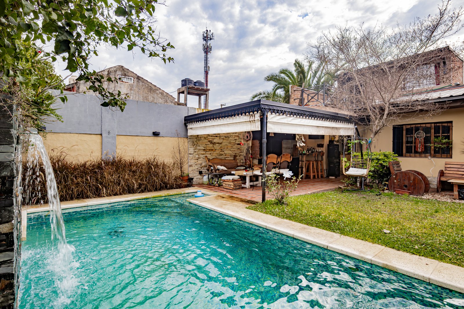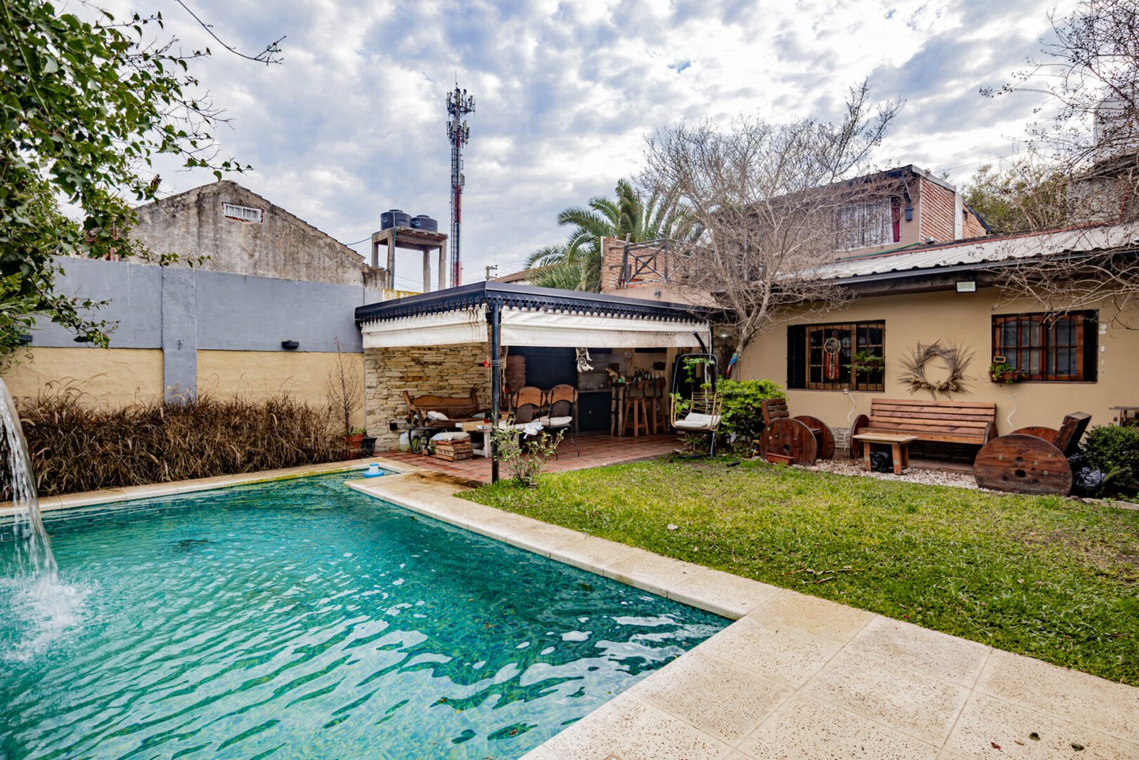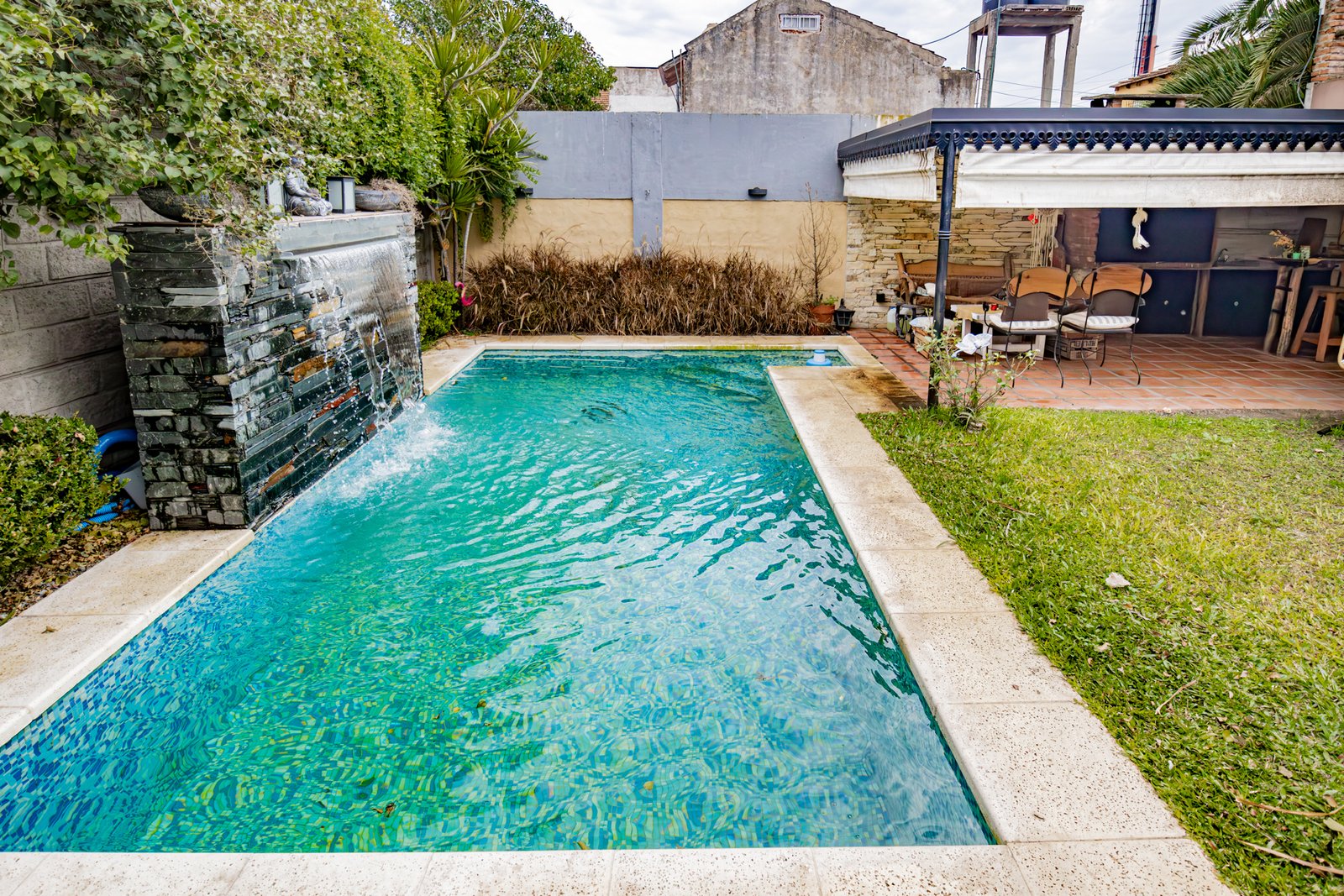 Galería semicubierta con parrilla, pileta de 6×3 revestida con venecitas,