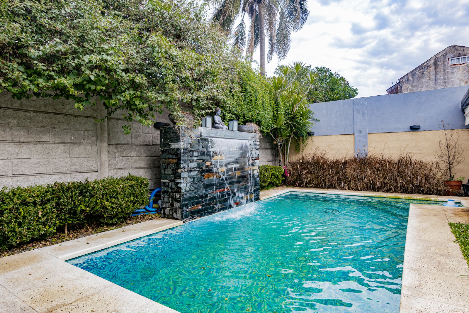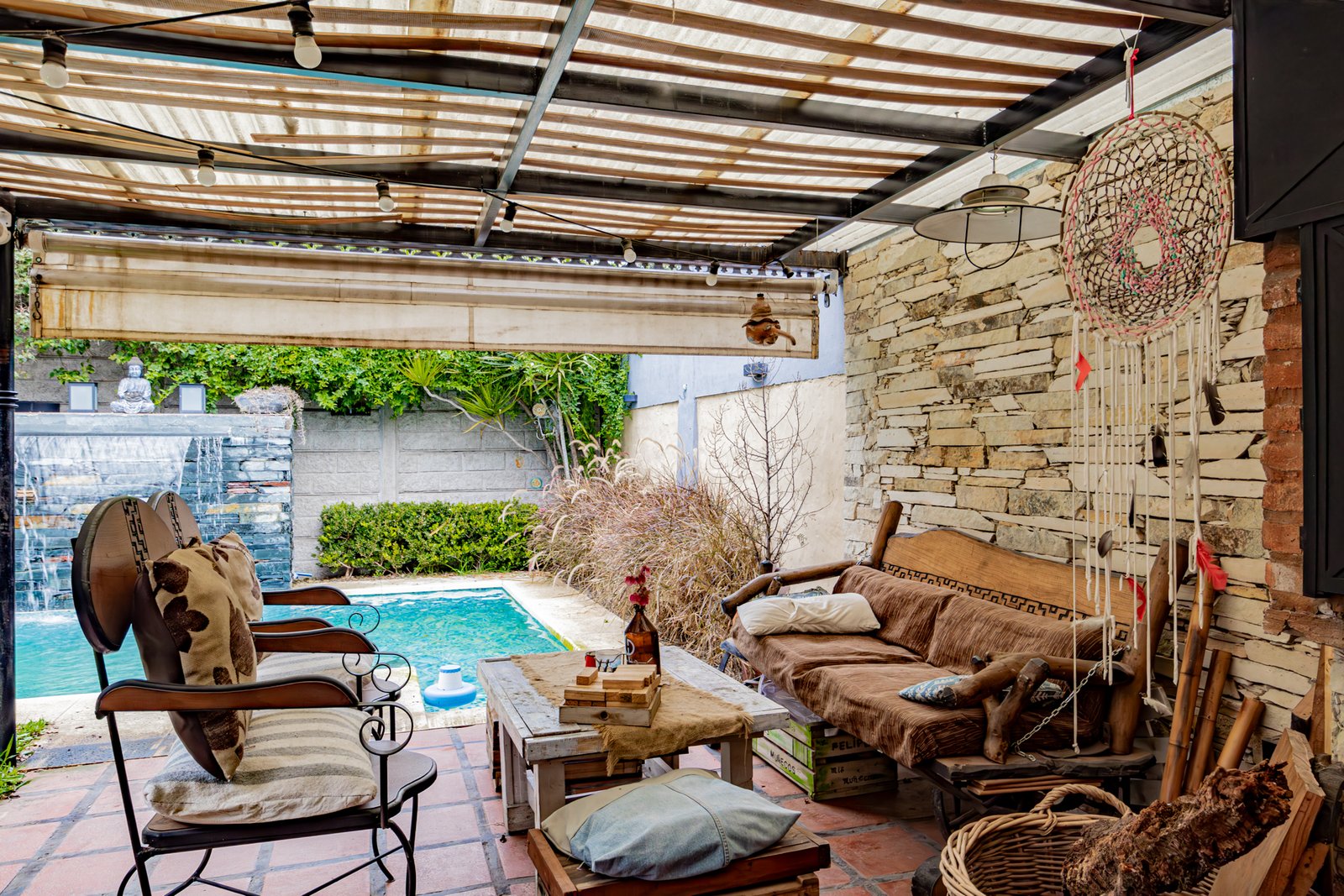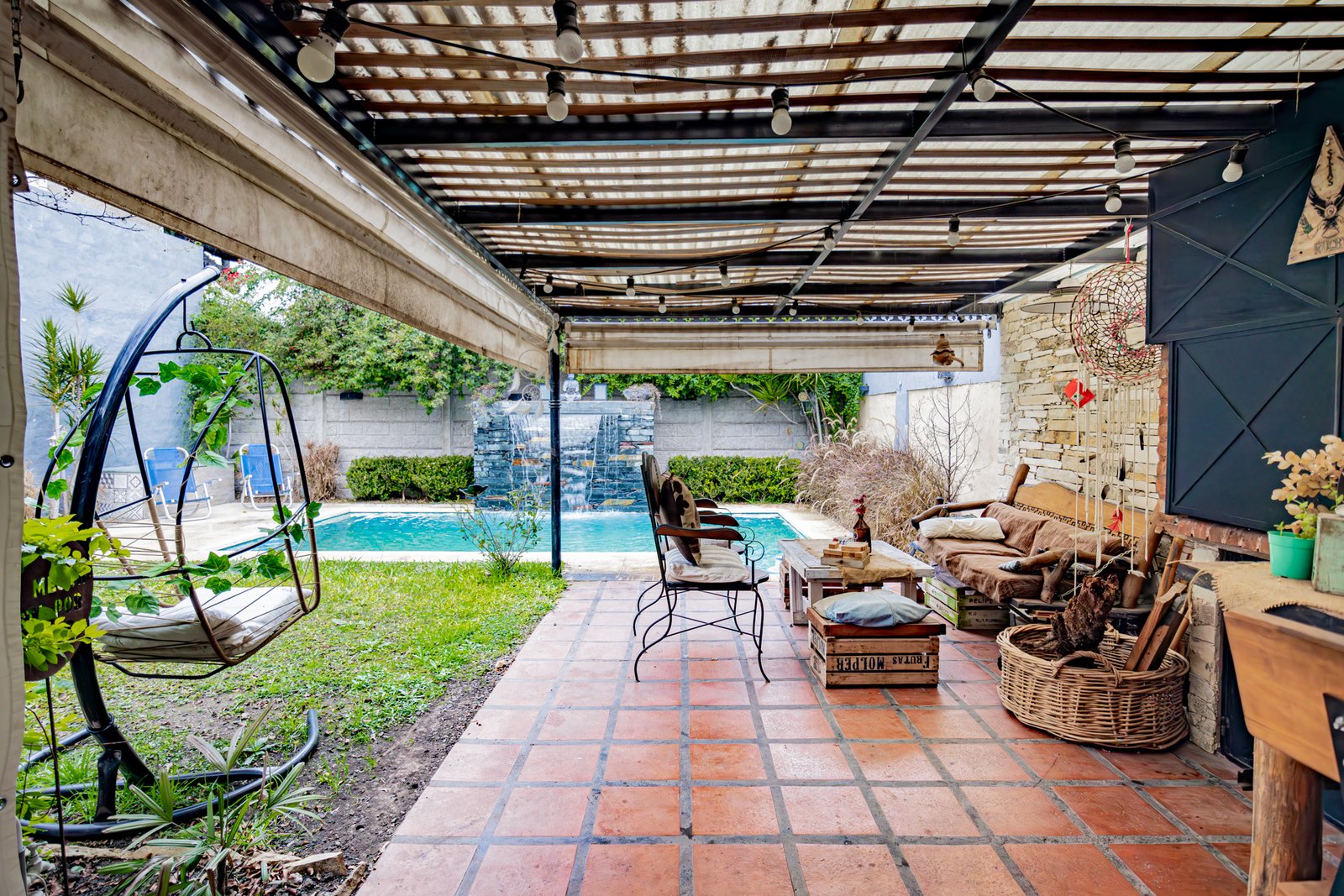 Galería semicubierta con parrilla, pileta de 6×3 revestida con venecitas,