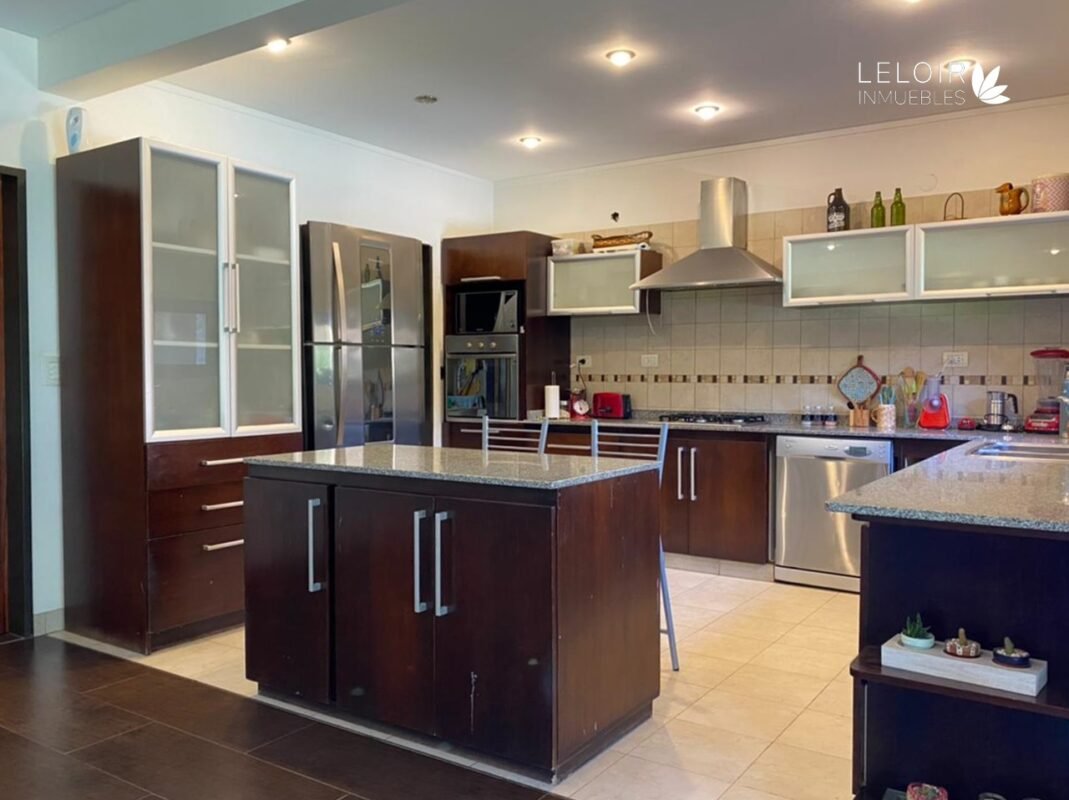 En la planta baja se encuentra el living comedor con amplios ventanales, cocina con isla totalmente equipada con muebles bajo y alto mesada, con espacio para conexión de lavavajillas. Escritorio y toilette.