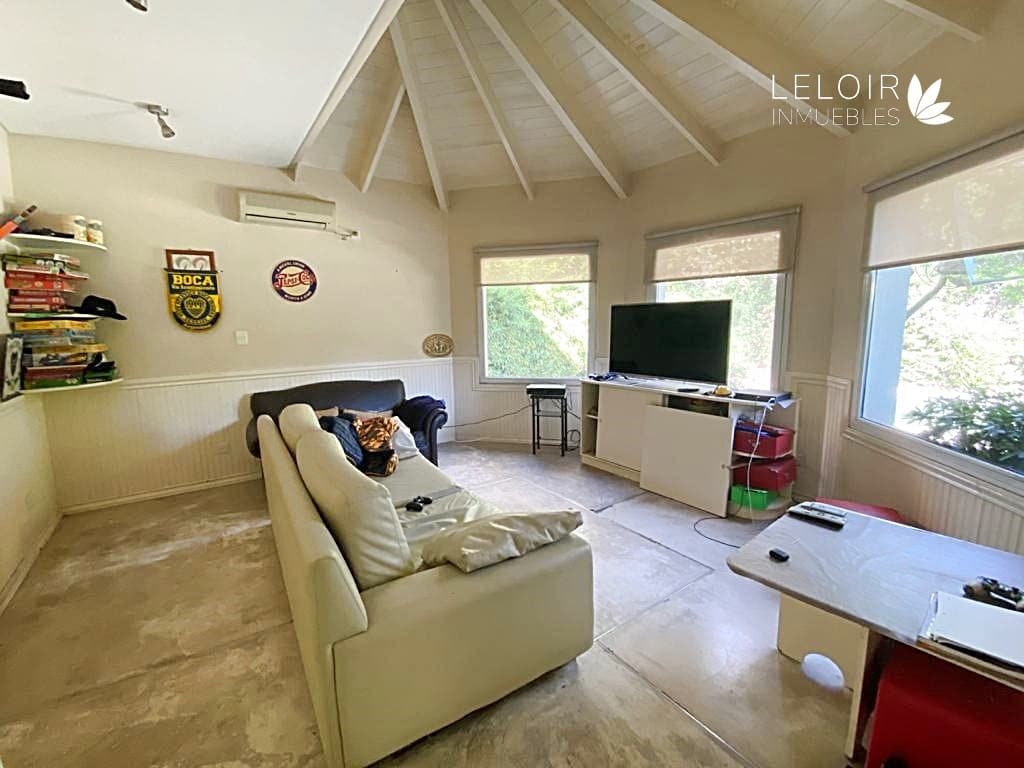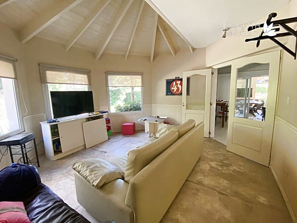 Excelente casa estilo country en Barrio Cerrado Altos del Sol, construida en dos plantas. En planta baja contamos con Living-comedor, cocina, playroom, toilette, lavadero, dependencia de servicio con baño. En planta alta contamos con 4 dormitorios, el principal en suite con vestidor, baño completo. En el exterior se encuentra la galería con parrilla y la piscina. Aberturas con doble vidrio, equipos split. Calefaccion por tiro balanceado.