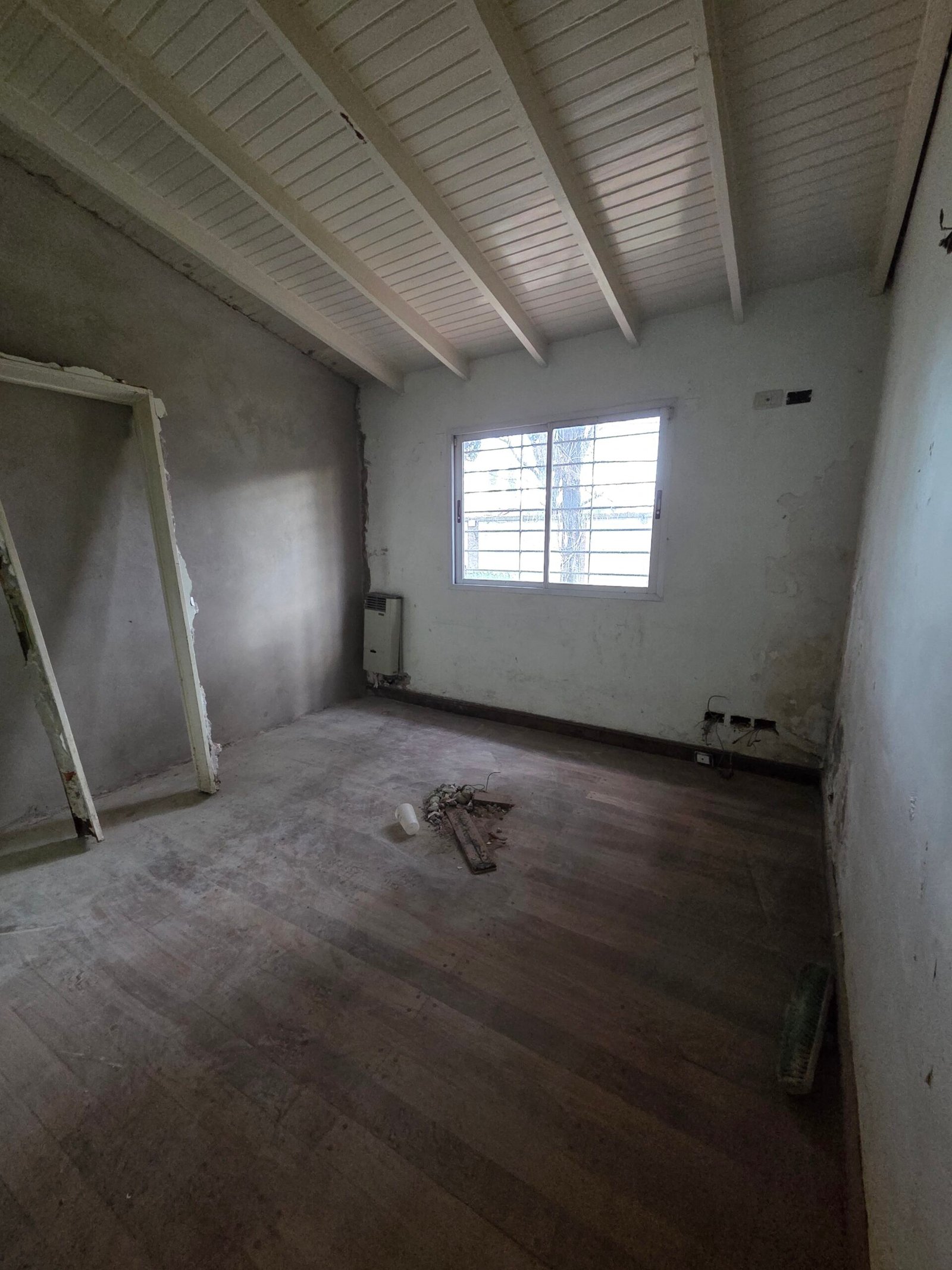 Excelente oportunidad! Casa A RECICLAR en venta desarrollada en una sola planta, living comedor con hogar y pisos de madera, dos amplios dormitorios, baño completo y toilette de recepción. Cocina (espacio para hacer)
