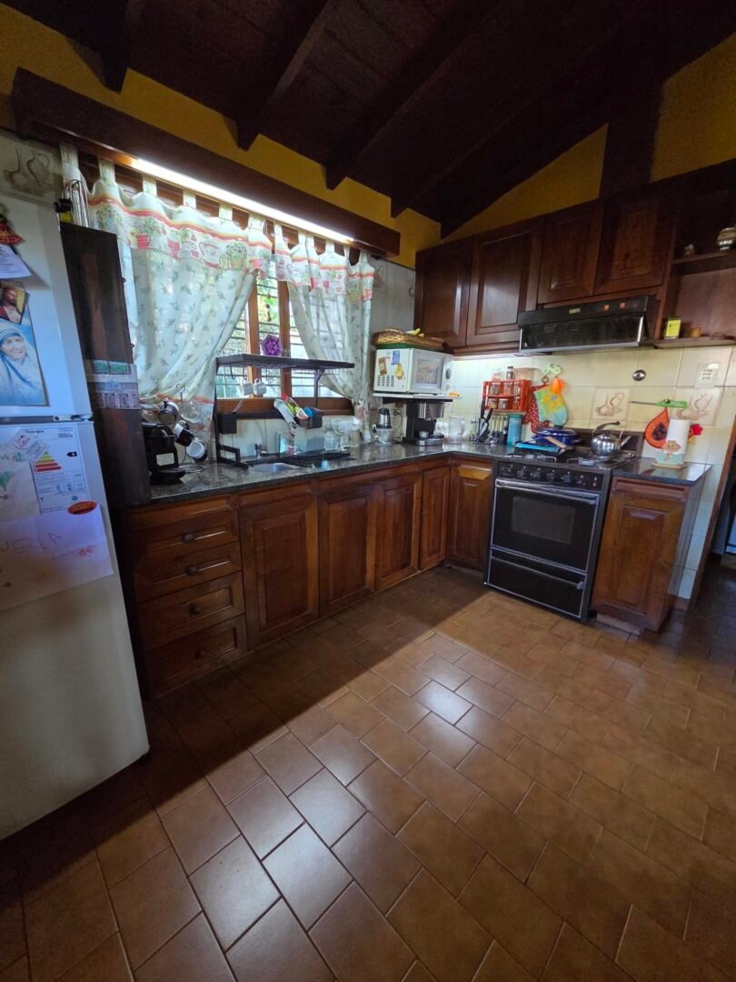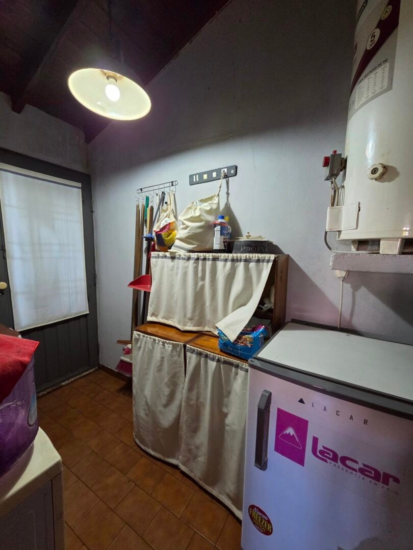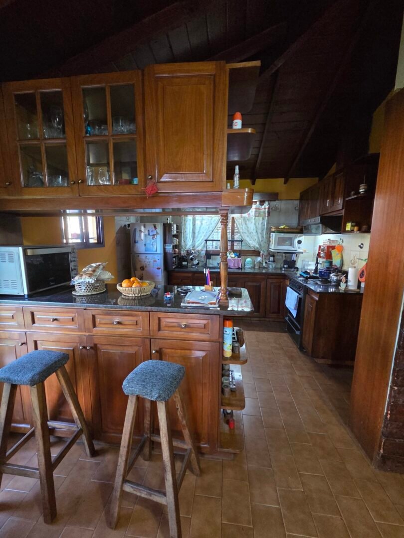 Living con hogar, cocina comedor amplia y luminosa con vista al jardin, cocina totalmente equipada integrada con una barra. Lavadero