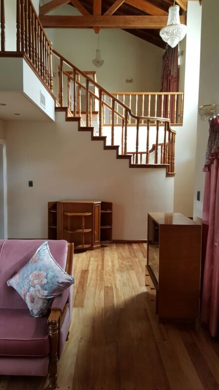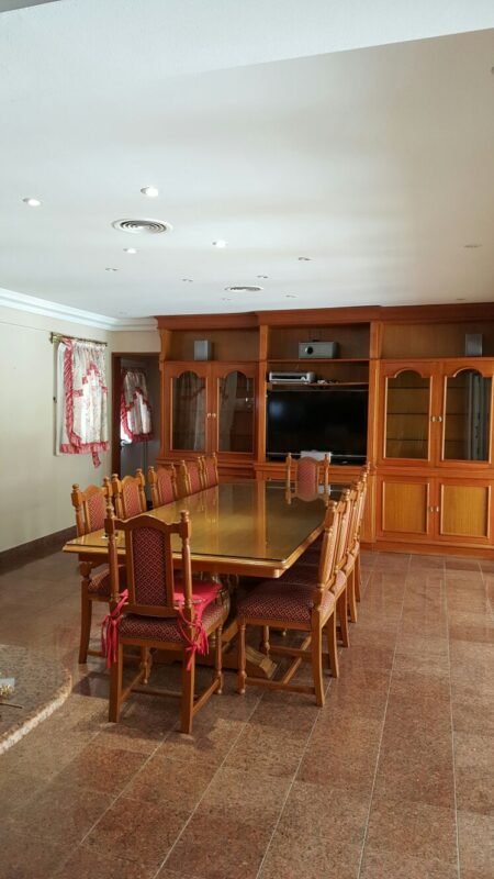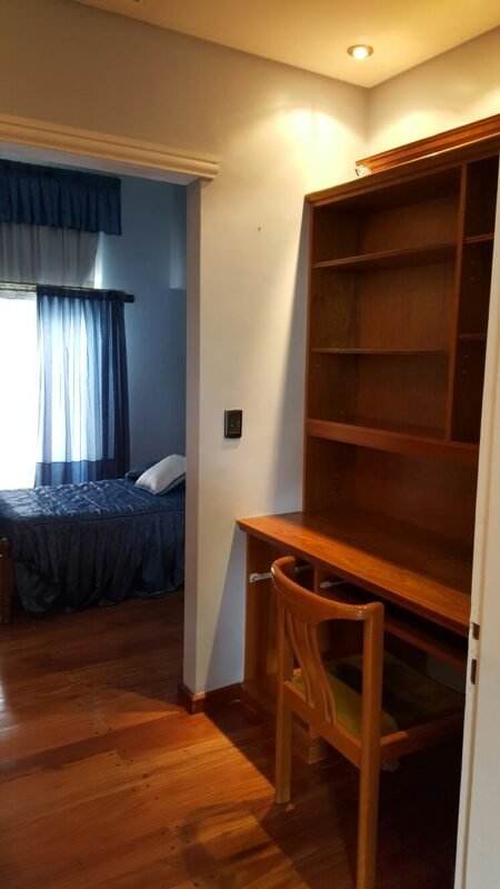 Todo con doble vidrio, vereda de porfido, muebles en madera roble, baño auxiliar para pileta