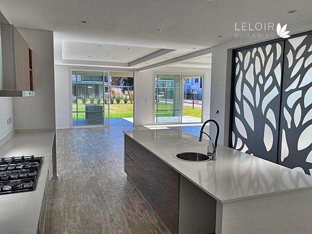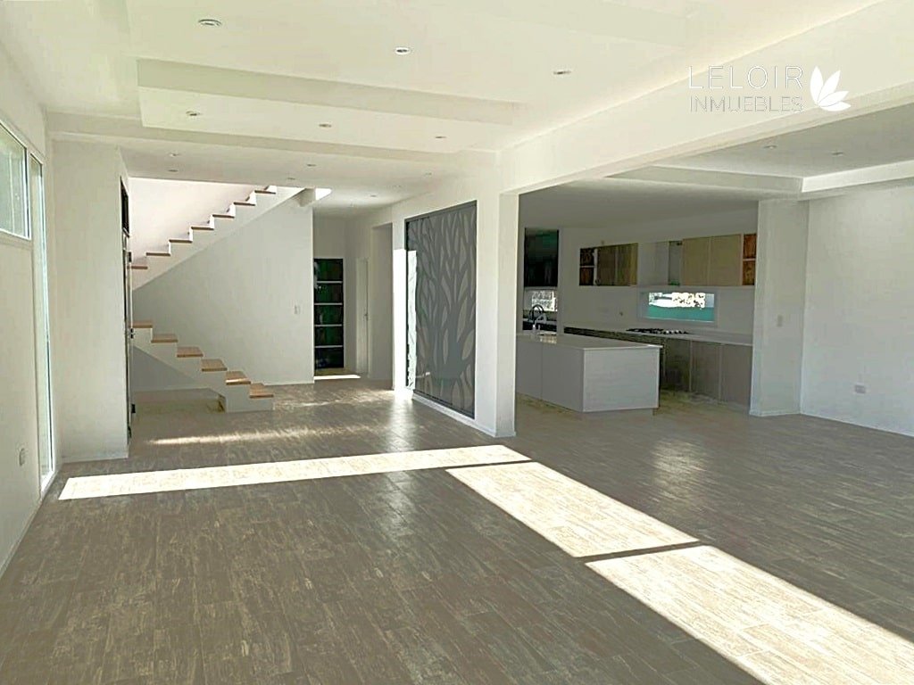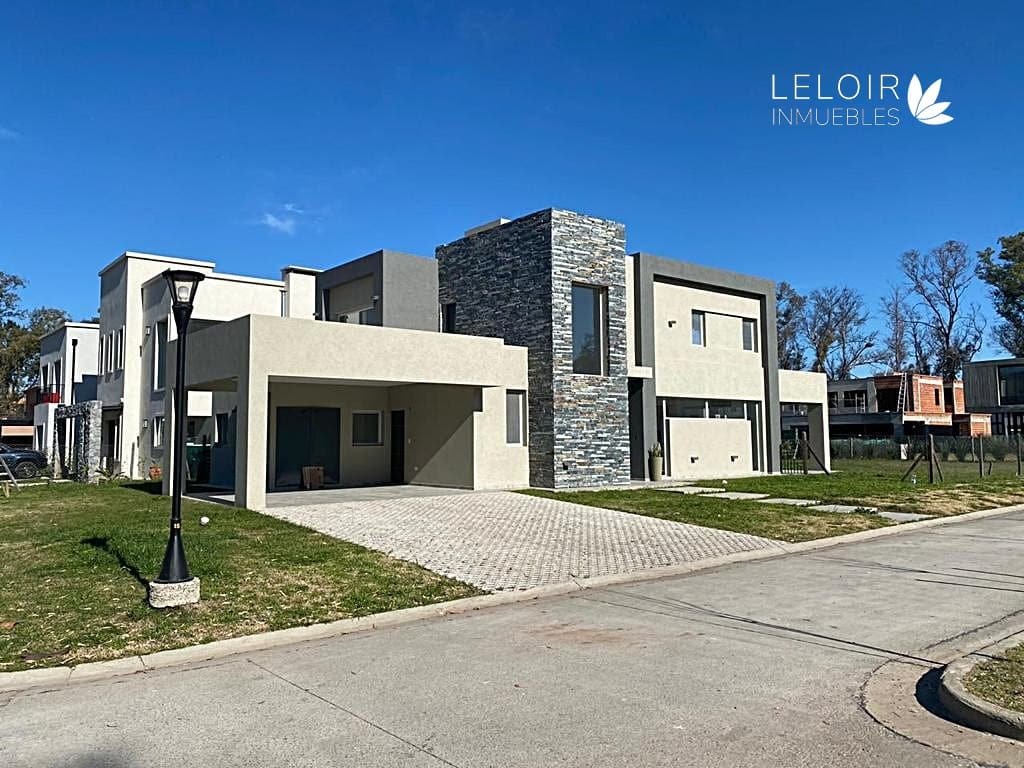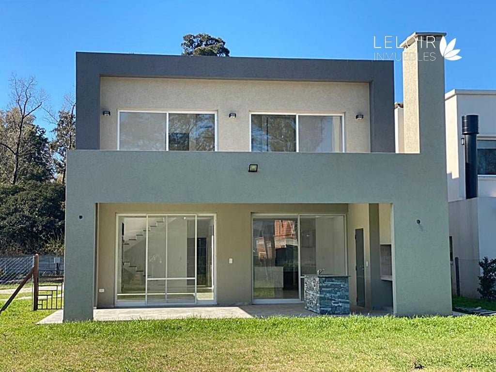 La casa se desarrolla en dos plantas sobre la base de un concepto integral y funcional de los ambientes. En planta baja encontramos un importante Living-comedor-cocina, teniendo esta ultima la particularidad de contar con dos sectores, uno principal integrado al living y un segundo sector con mas intimidad en donde se encuentra el sector de despensa y lavado. En planta baja tambien contamos con baño completo con antebaño, escritorio, lavadero, galeria semicubierta contigua al living con parrilla y baño externo, cochera semicubierta para dos autos. En Planta alta contamos con dormitorio principal en suite con vestidor, dos amplios dormitorios con placard, baño completo. Parque con piscina y riego por aspersion. Equipos split frio-calor en todos los ambientes.