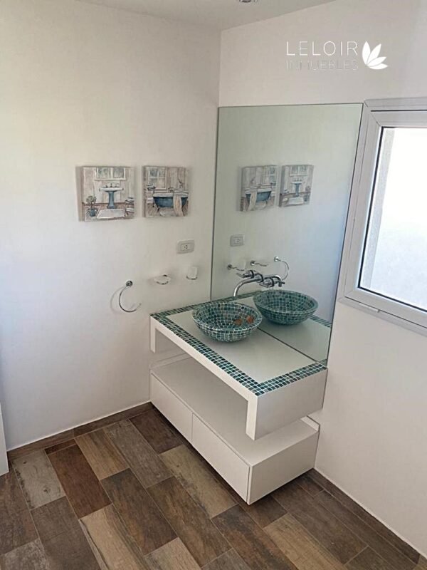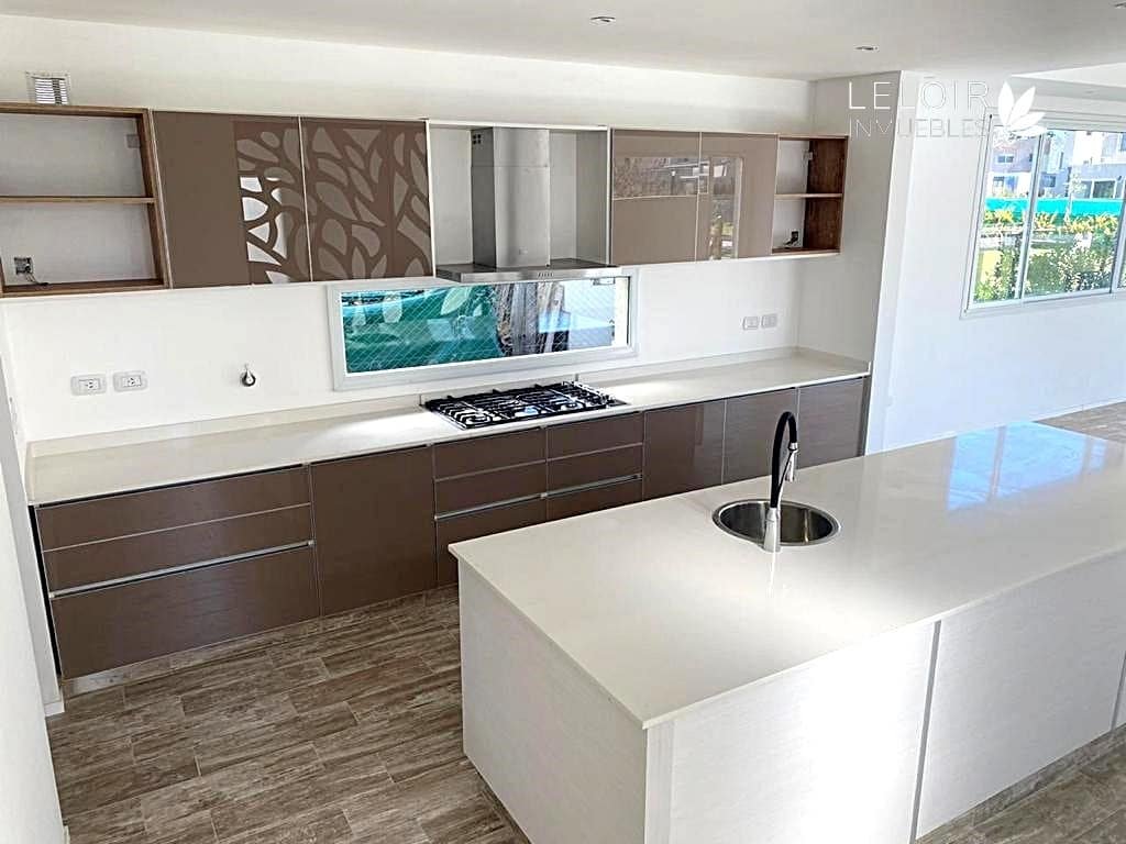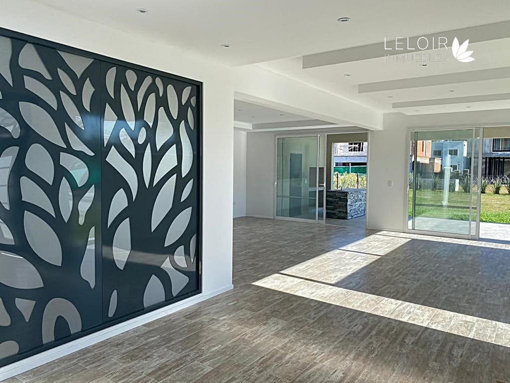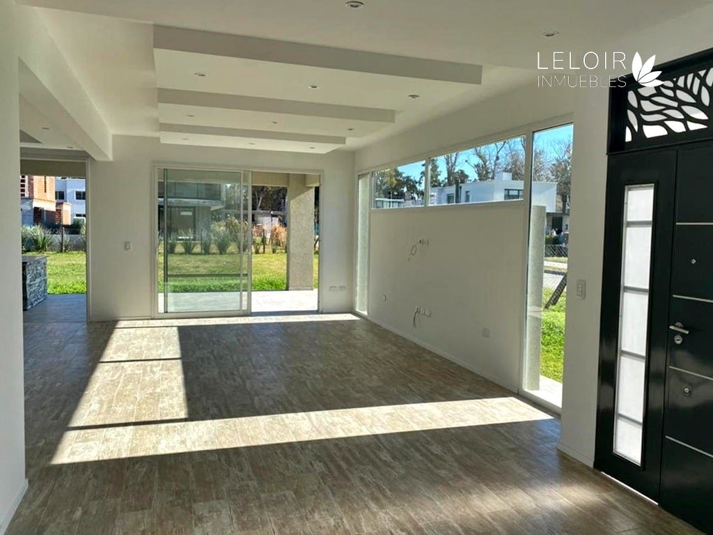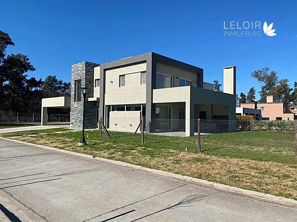 La casa se desarrolla en dos plantas sobre la base de un concepto integral y funcional de los ambientes. En planta baja encontramos un importante Living-comedor-cocina, teniendo esta ultima la particularidad de contar con dos sectores, uno principal integrado al living y un segundo sector con mas intimidad en donde se encuentra el sector de despensa y lavado. En planta baja tambien contamos con baño completo con antebaño, escritorio, lavadero, galeria semicubierta contigua al living con parrilla y baño externo, cochera semicubierta para dos autos. En Planta alta contamos con dormitorio principal en suite con vestidor, dos amplios dormitorios con placard, baño completo. Parque con piscina y riego por aspersion. Equipos split frio-calor en todos los ambientes.