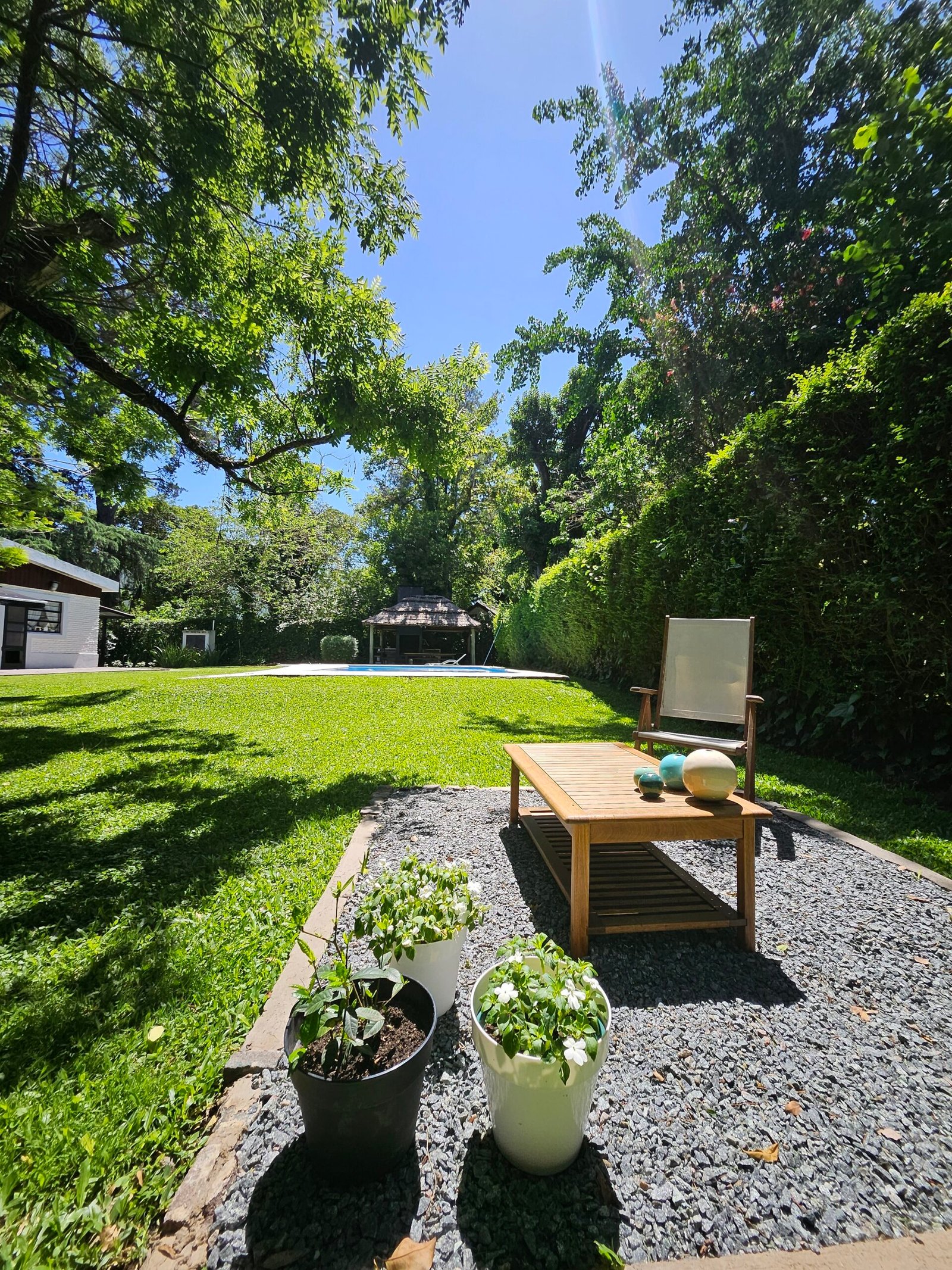 Quincho semicubierto con parrilla y pileta de 10 x 5