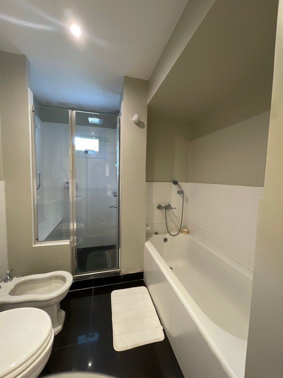 Suite principal con vestidor y baño completo con ducha y bañera.