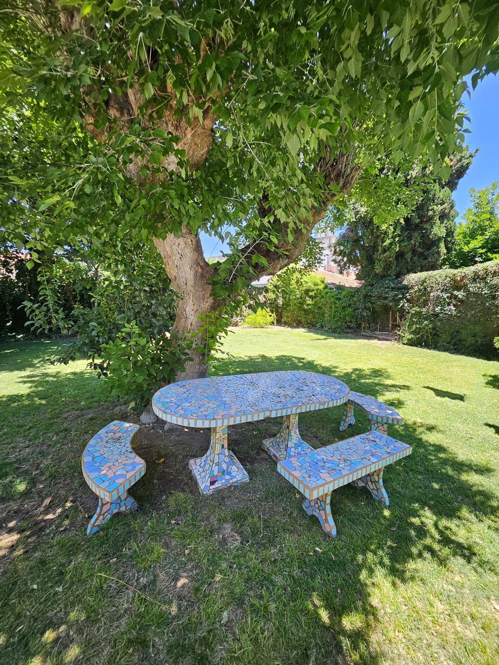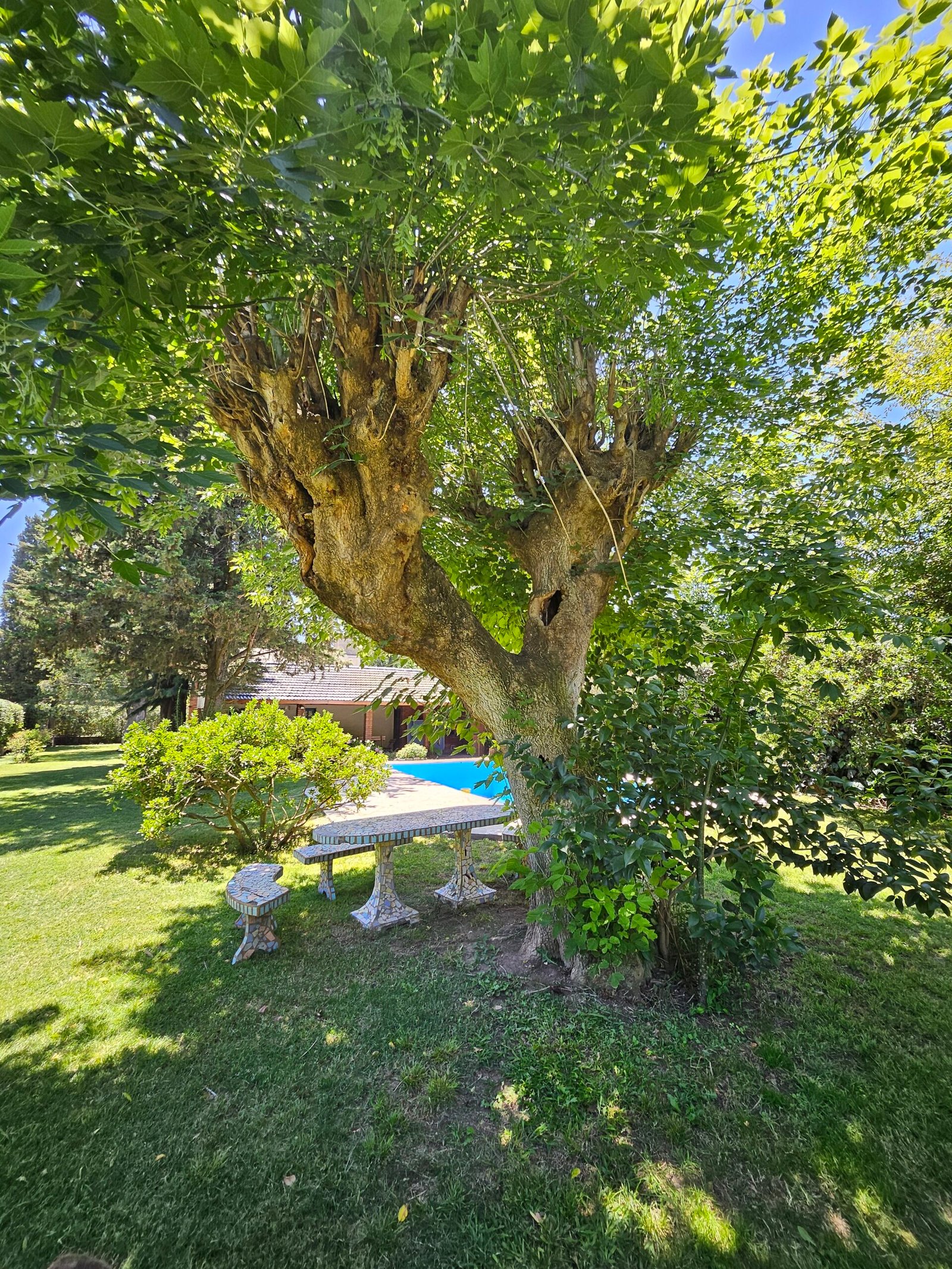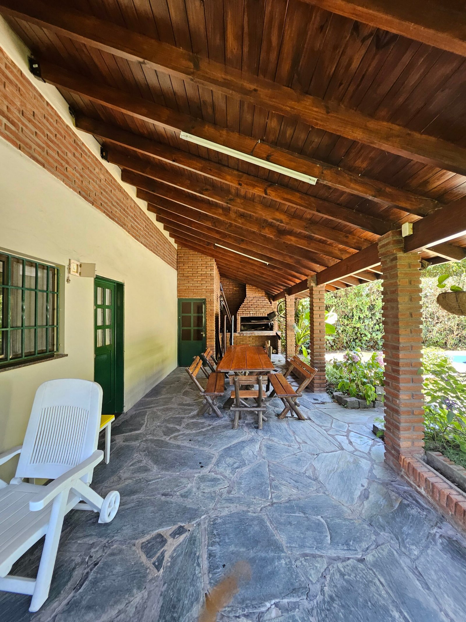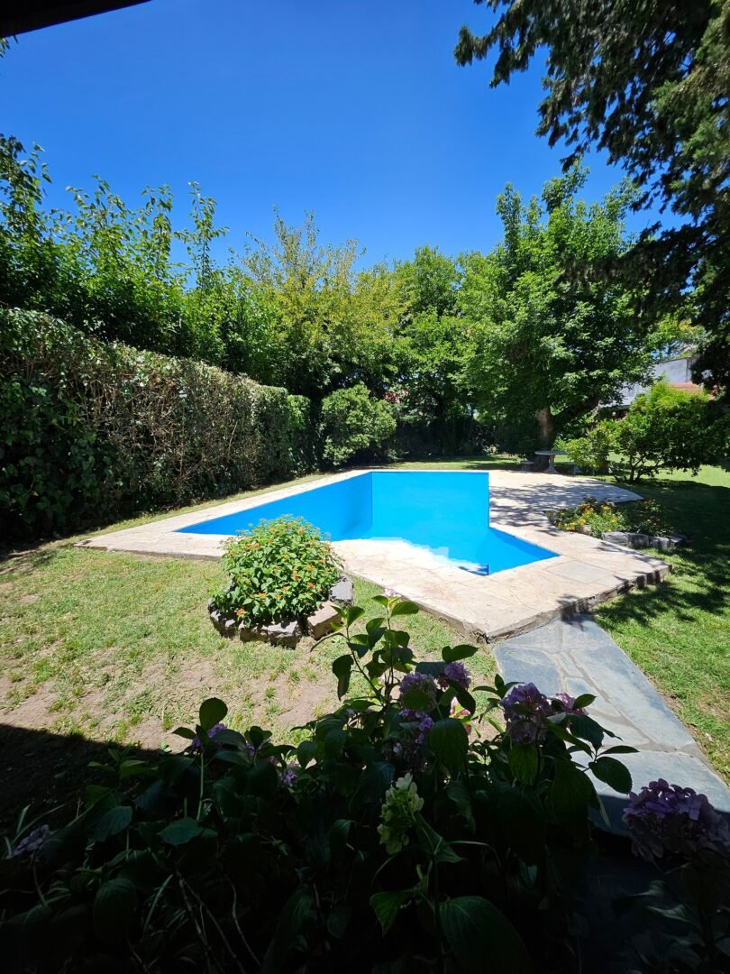 Galería semicubierta con parrilla, jardin arbolado, pileta de 10×5