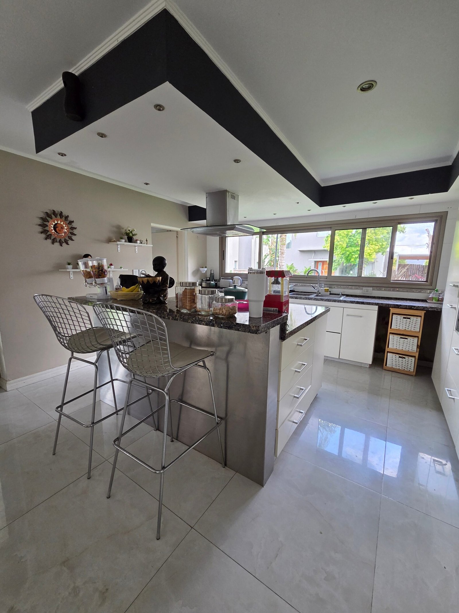 Planta Baja: imponente living comedor en doble altura, dormitorio u escritorio, baño completo, cocina comedor con isla, lavadero con baño, galeria semicubierta con parrilla, cochera semicubierta.