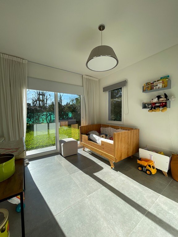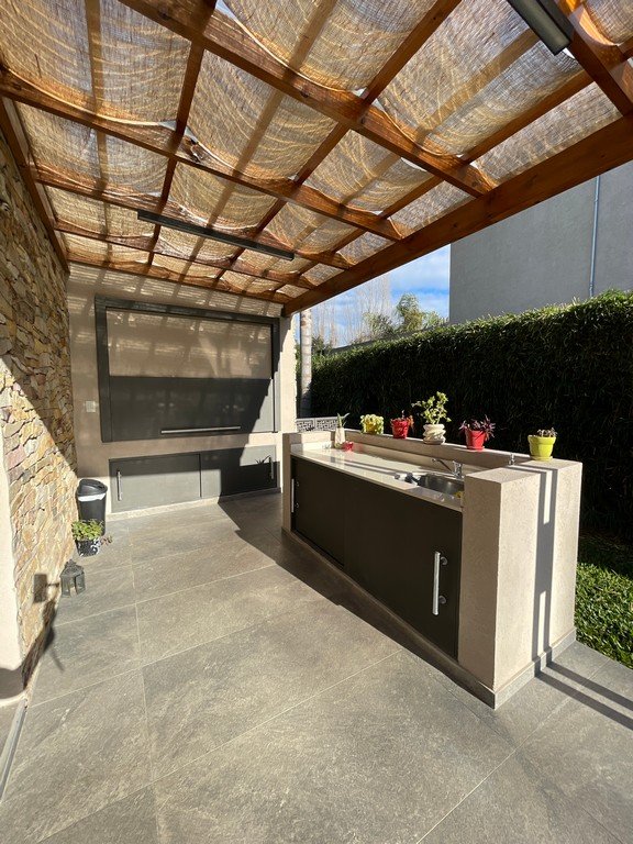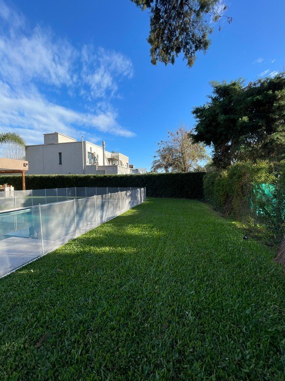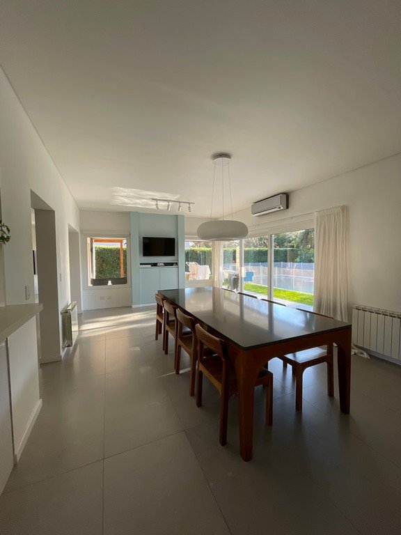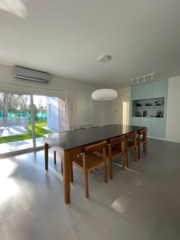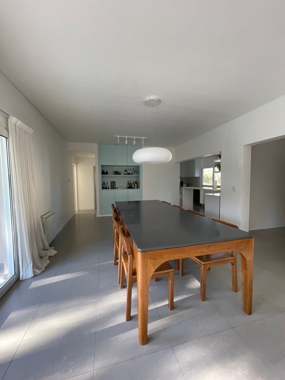 Comedor de 7×4, living de 6×4, todos ambientes amplios y muy luminosos con vistas al jardín, Cocina totalmente equipada con muebles altos y bajos laqueados, barra desayunadora, mesada de Silestone, anafe de 6 hornallas, campana con extractor y horno empotrado. Toilette de recepción.