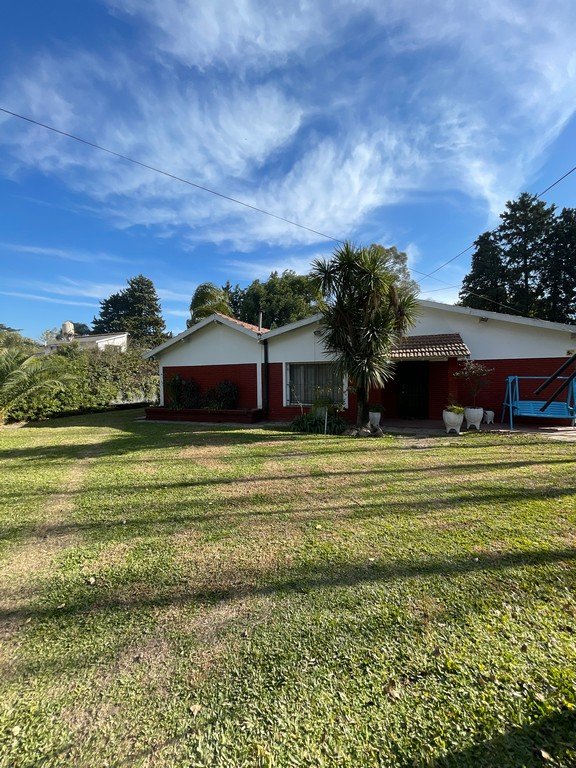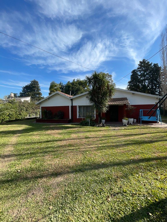 Chalet construido sobre lote de 1095m2 en una planta, living-comedor con hogar, comedor en desnivel y cocina