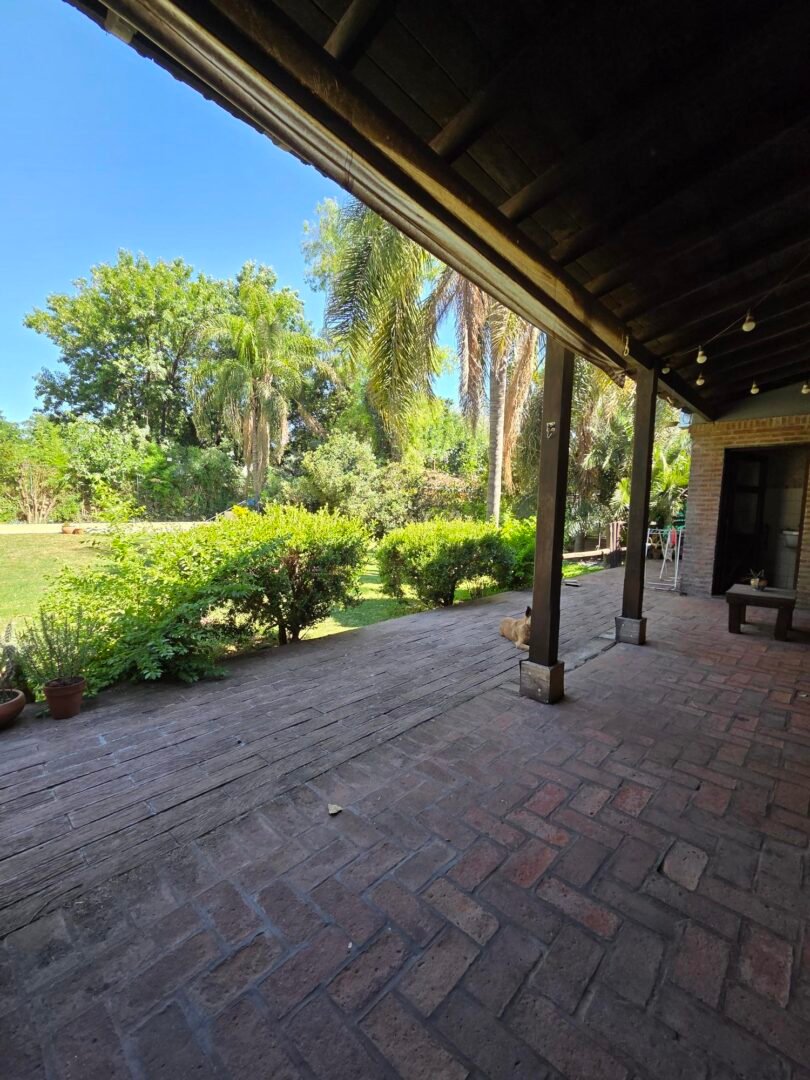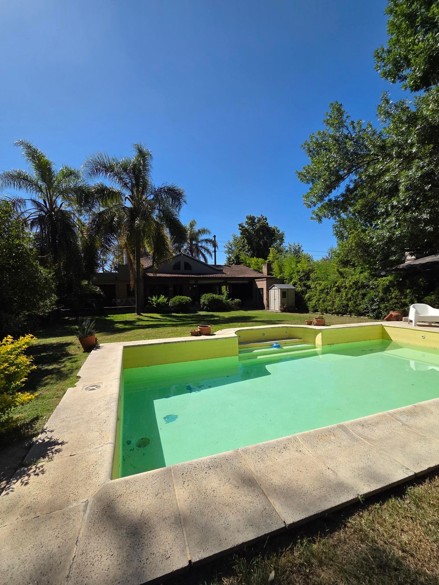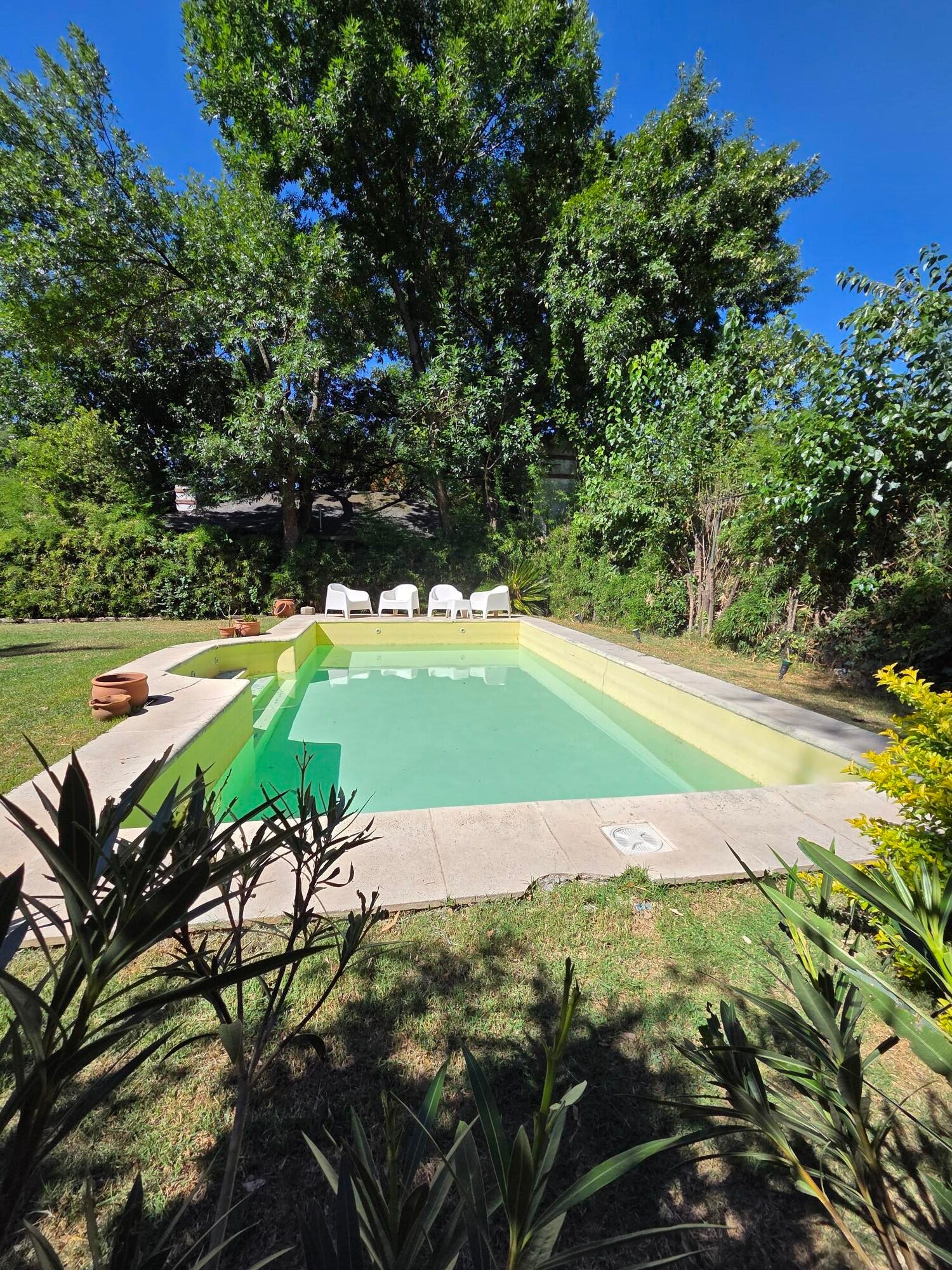 Galería semicubierta con parrilla, lavadero, jardín con pileta 8×4, baño externo