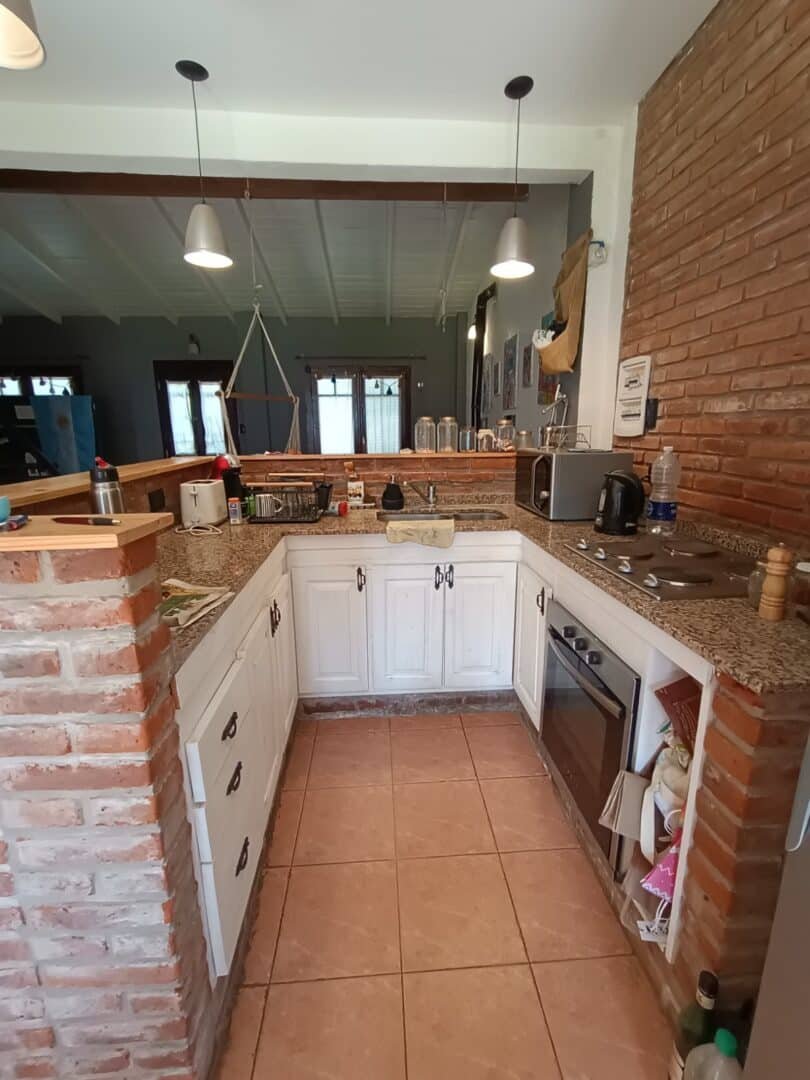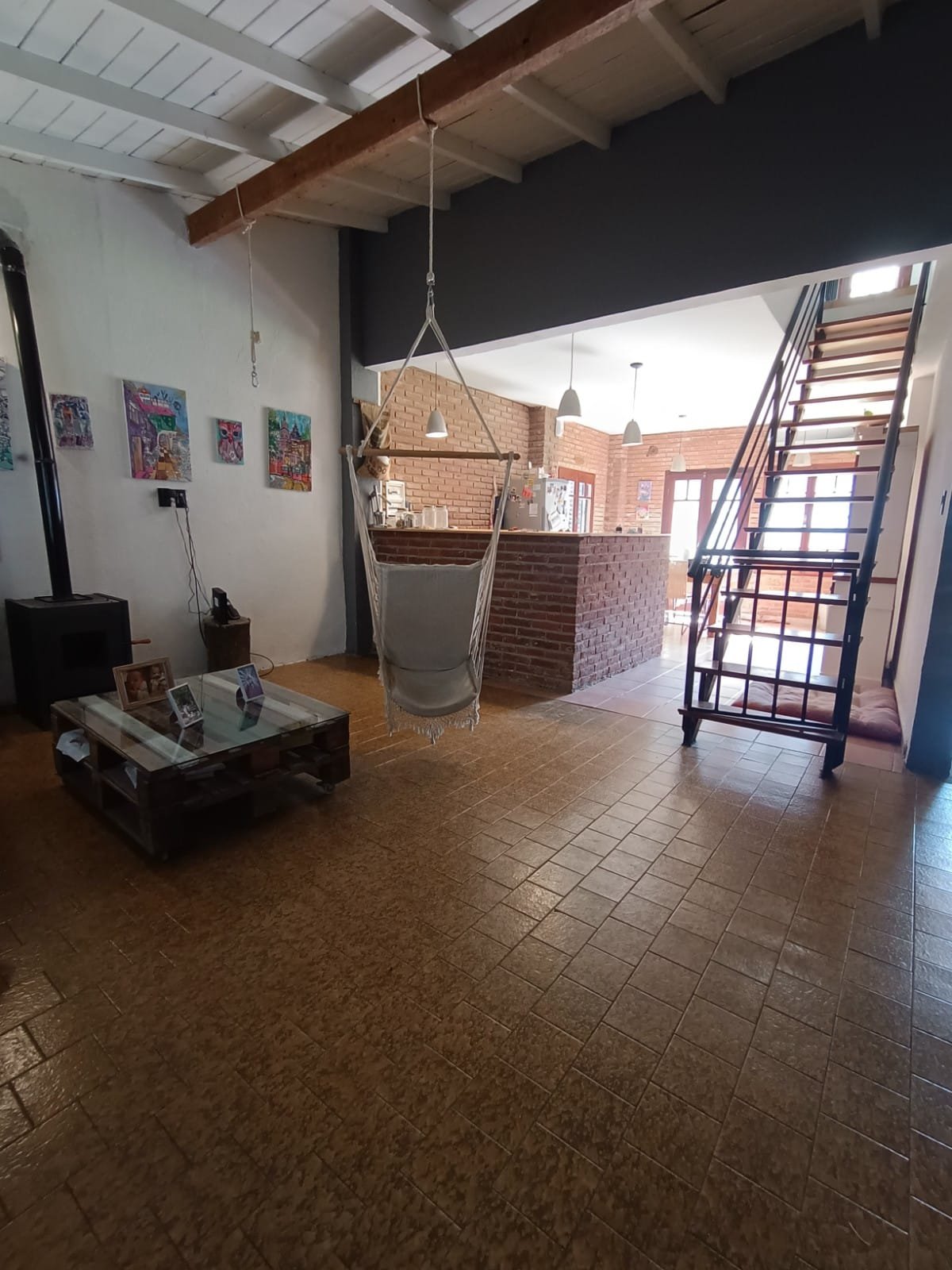 PB Amplio living con salamandra, cocina comedor integrada con barra, toilette y baño con ducha. Dormitorio/ escritorio