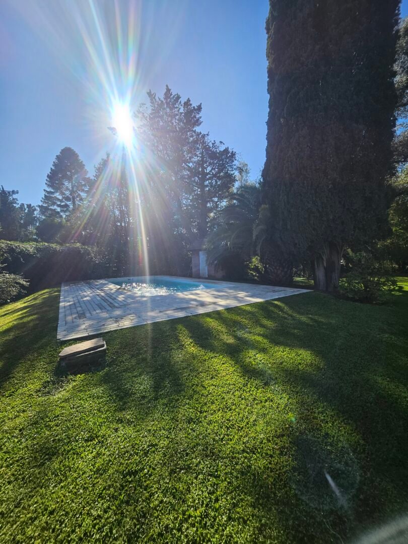 En el exterior contamos con una casa de caseros que se puede utilizar como lugar de guardado, taller, etc, piscina de 10 x 4 con amplio solárium con piso refractario.