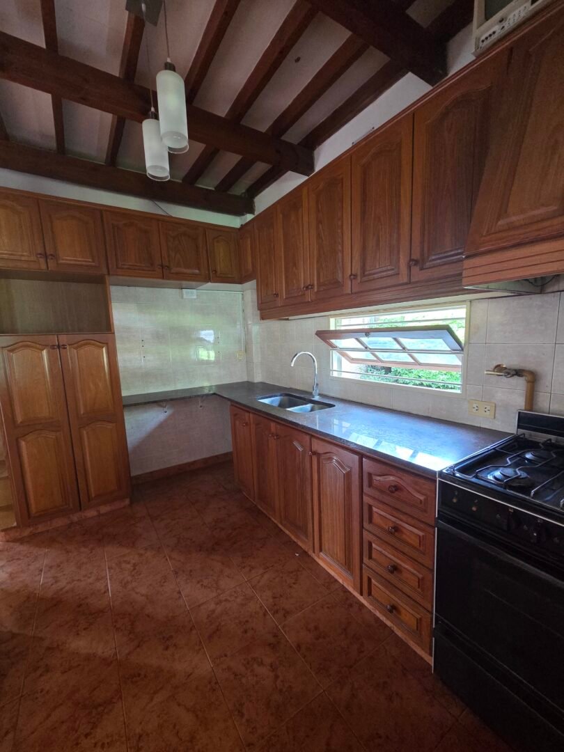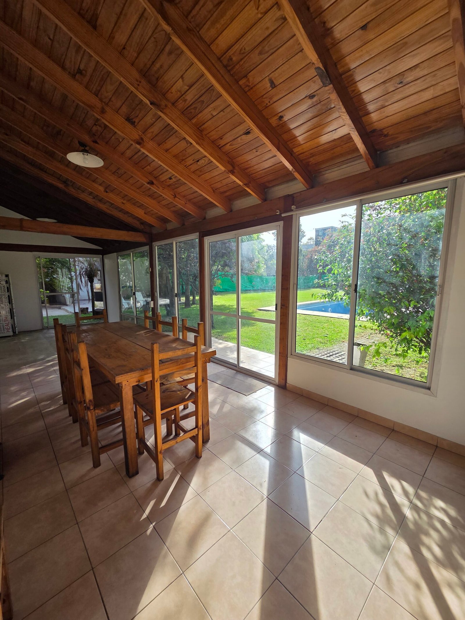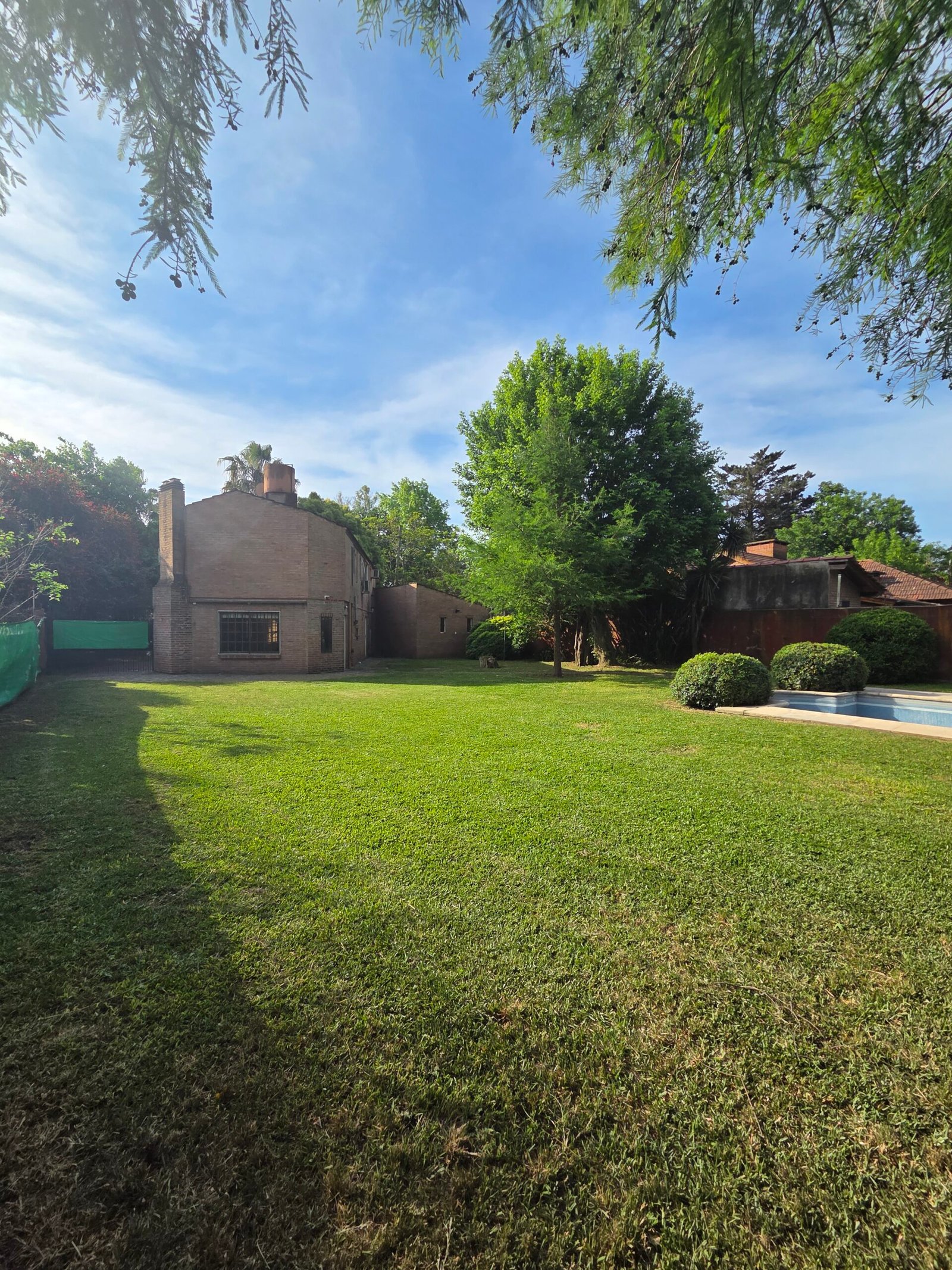 Quincho cubierto con parrilla, baño y cocina, pileta de 8 x 4 revestida con venecitas, guarda útiles.
