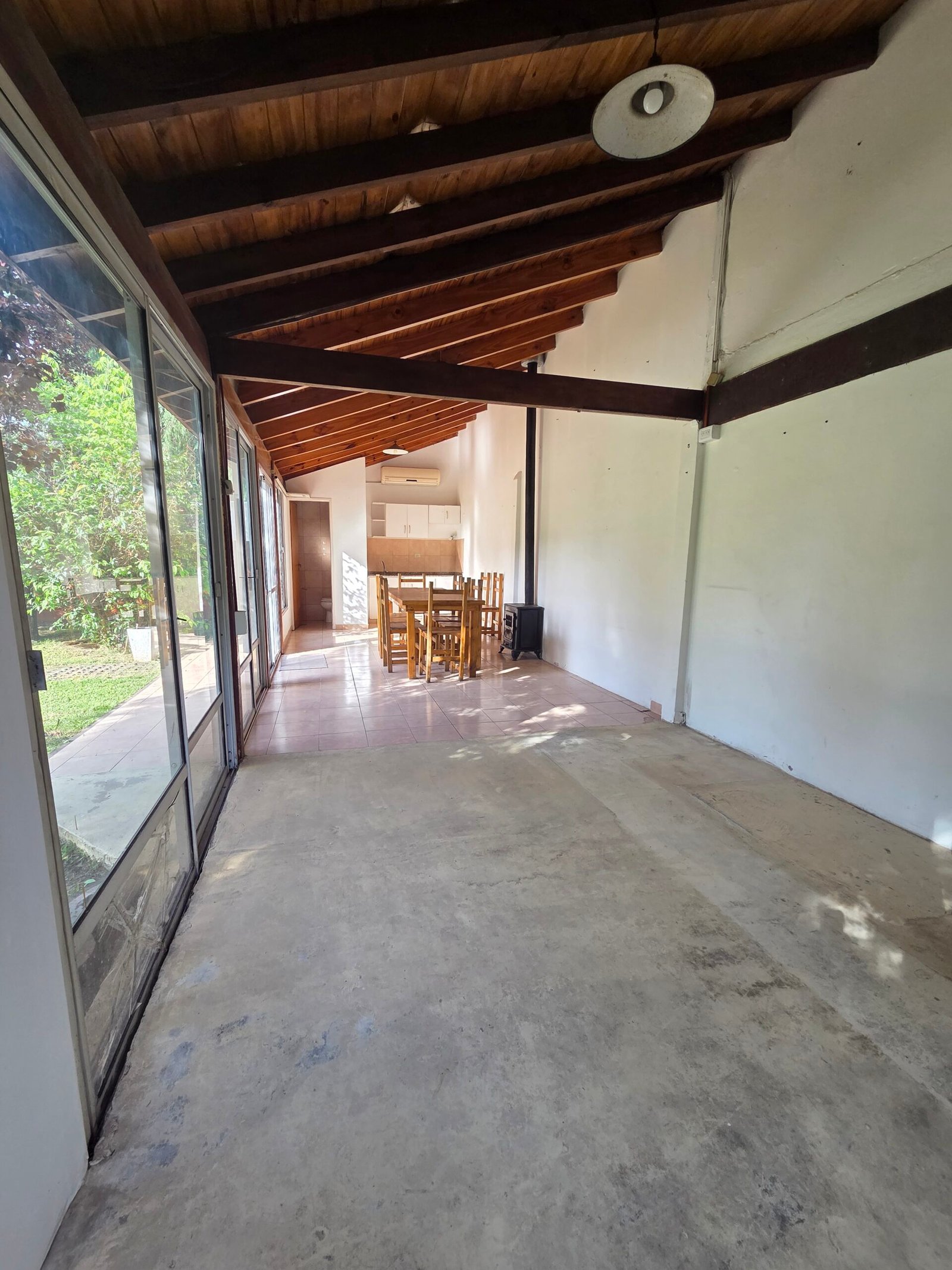 Techo de tejas francesas, pisos cerámicos, aberturas de madera, gas natural, aire acondicionado, calefacción x tiro balanceado, portón automático, alarma
