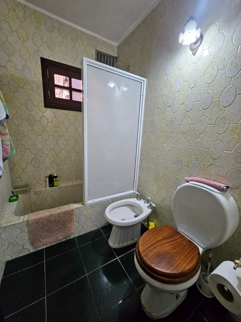 Aberturas de madera con vidrios biselados, calefacción por losa radiante en toda la casa, aire acondicionado split
