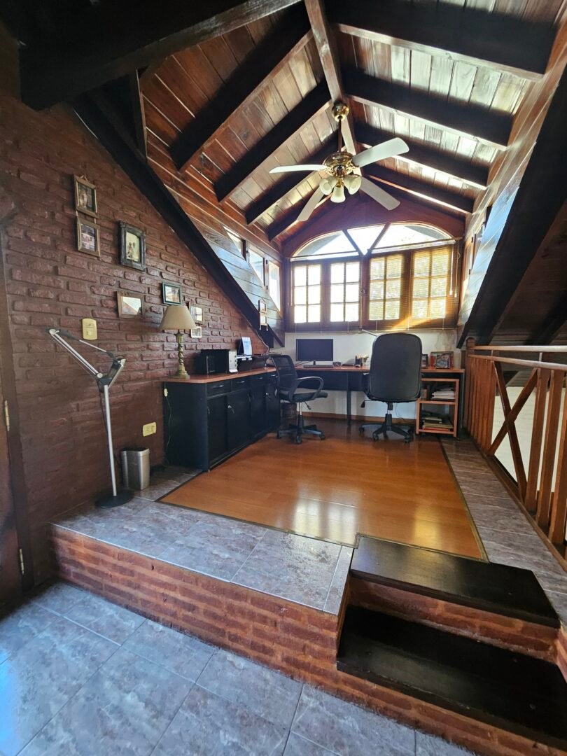 En planta alta ,gran playroom que balconea al living, con escritorio, balcon terraza y habitacion o cuarto de guardado exterior