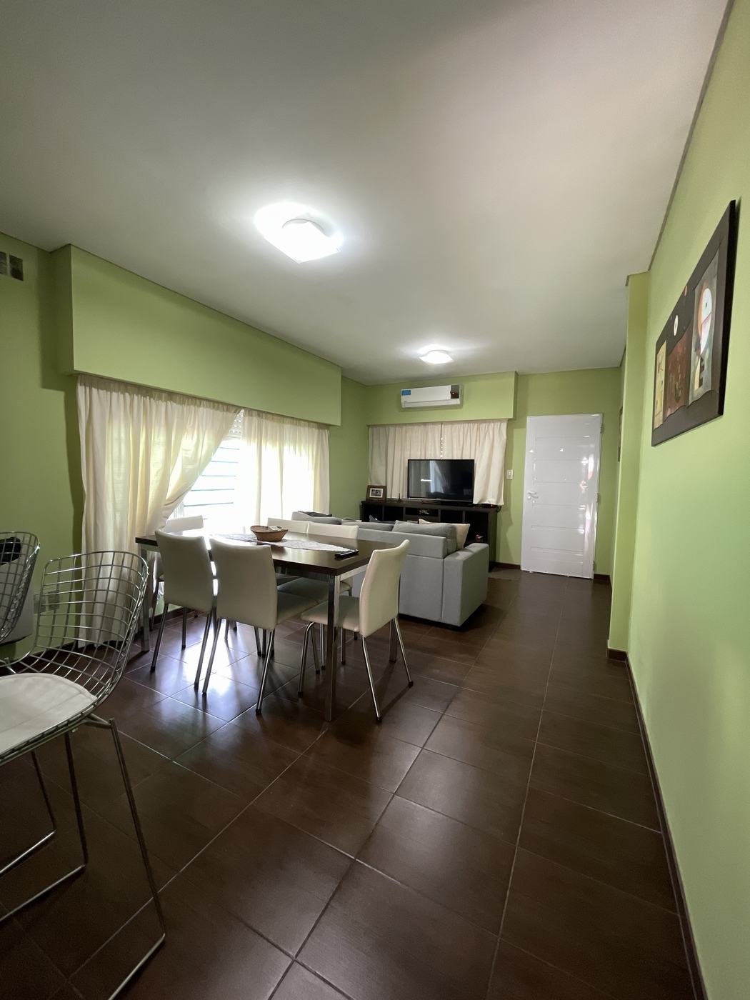 Desarrollada en una planta, living comedor con cocina integrada con barra. Dos dormitorios con placard y baño completo. Escritorio
