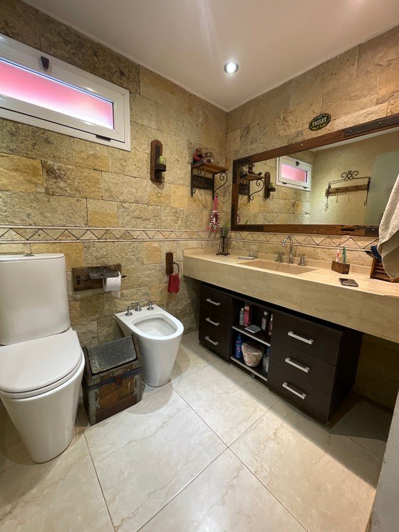 Aberturas DVH, pisos de porcelanato y flotantes, paredes revestidas con piedra y tarquini interior y exterior