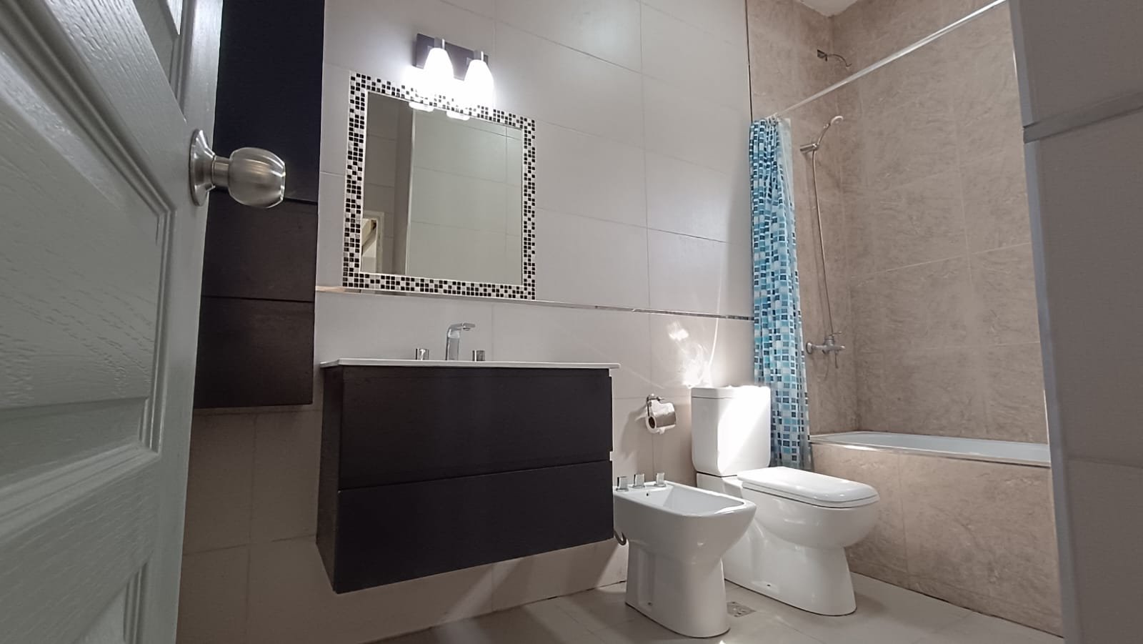 Living comedor con cocina integrada amoblada. Hall de distribución, dos dormitorios y baño completo.