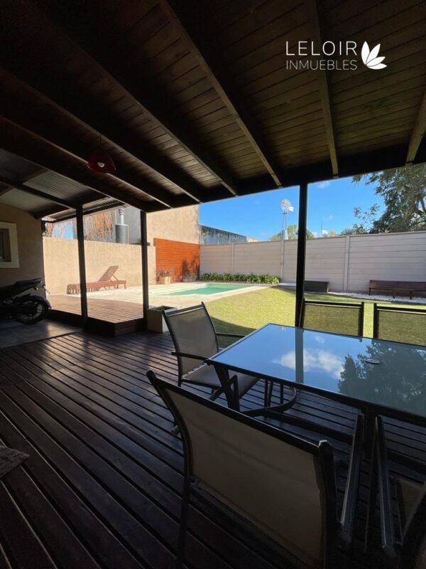 Pileta con borde térmico y solarium , galería semicubierta y parrilla