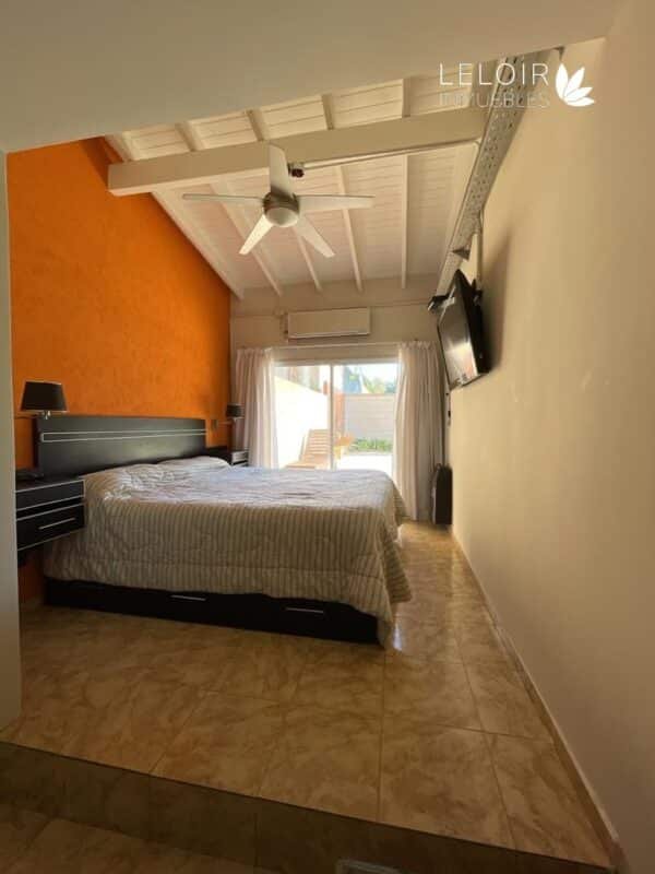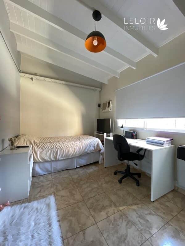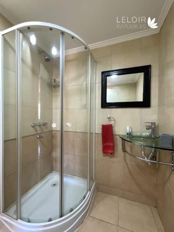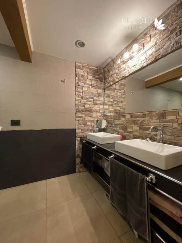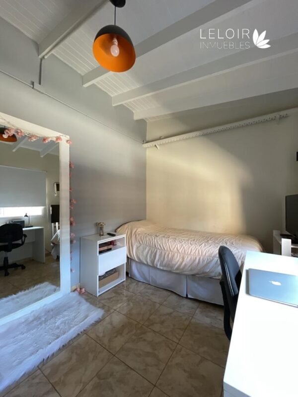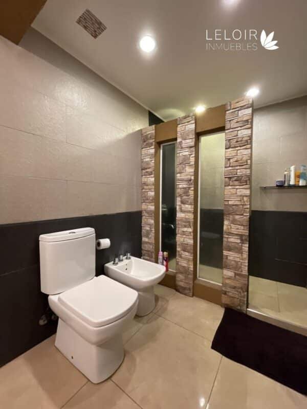 En un área mas privada de la propiedad se encuentran la suite principal, con salida directa al solarium y tres dormitorios con placard. Baño completo con doble bacha revestido con piedra.